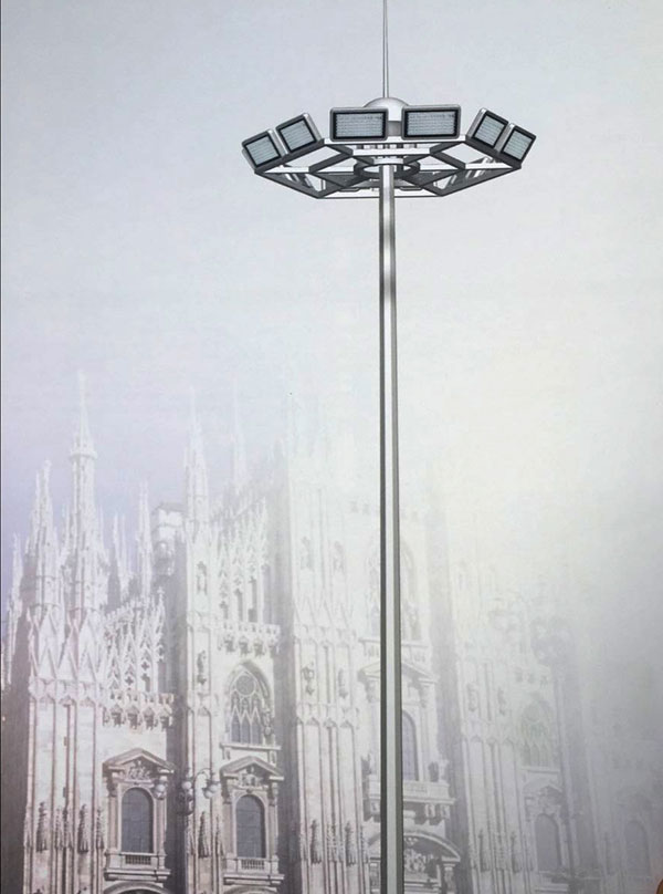 高桿燈一般是指15米以上鋼制錐形燈桿和大功率組合式燈架構成的新型照明裝置。它由燈頭、內部燈具電氣、桿體及基礎部分組成。燈頭造型可根據用戶要求、周圍環境、照明需要具體而定;內部燈具多由泛光燈和投光燈組成,光源采用LED,照明半徑達60米。桿體一般為棱錐形獨體結構,用鋼板卷制而成,高度為15—40米,多為兩到三節構成。